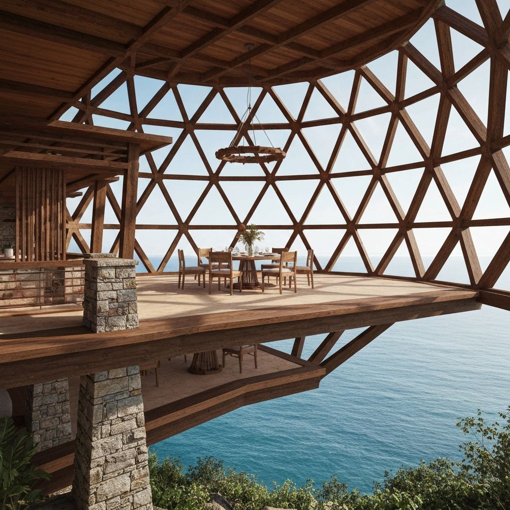 Organic modernism meets geodesic innovation in breathtaking interior spaces